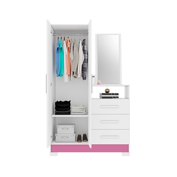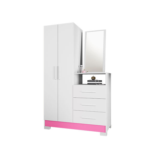 COMODA MULTIUSO 2 PUERTAS 3 CAJONES CON ESPEJO NT5165 NOTAVEL BLANCO|ROSA