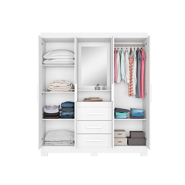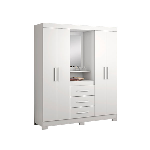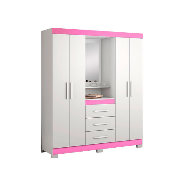 ROPERO 4 PUERTAS 3 CAJONES CON ESPEJO CAPELINHA NT5015 NOTAVEL BLANCO|ROSA