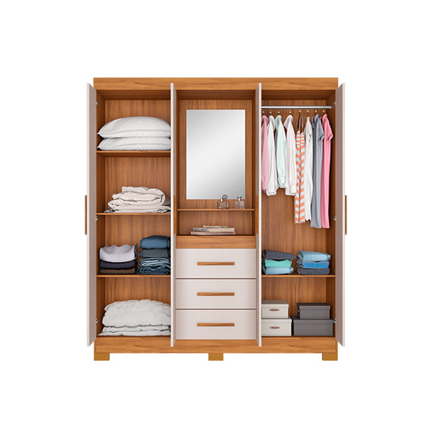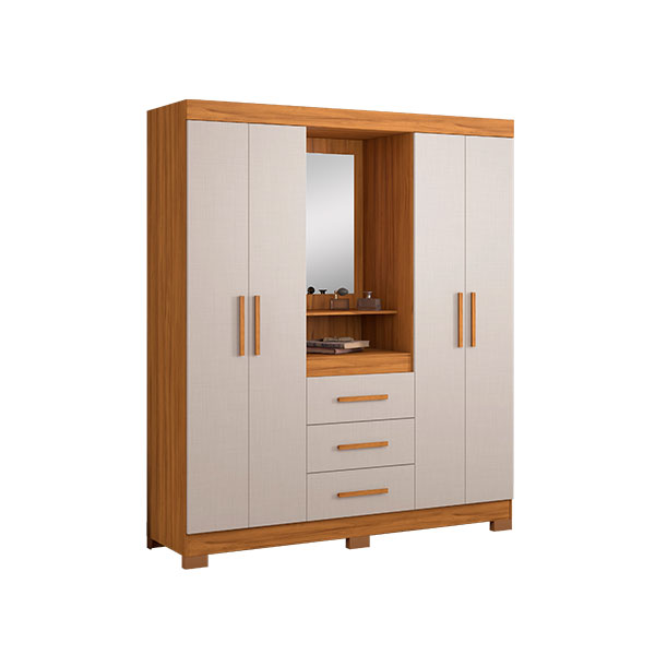 ROPERO 4 PUERTAS 3 CAJONES CON ESPEJO CAPELINHA NT5015 NOTAVEL FREIJO TREND|OFF WHITE