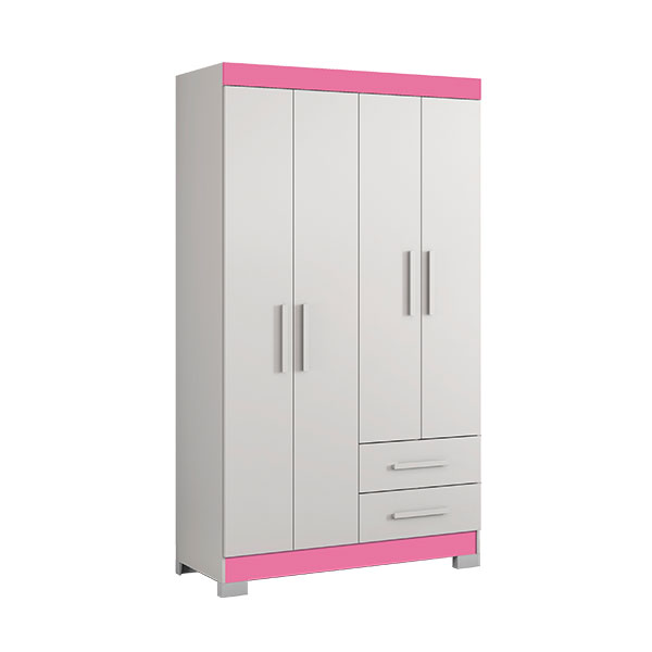 ROPERO 4 PUERTAS 2 CAJONES NT5005 NOTAVEL BLANCO|ROSA